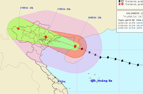 Chùm ảnh đường đi và vị trí của cơn bão. Ảnh: nchmf.gov.vn |